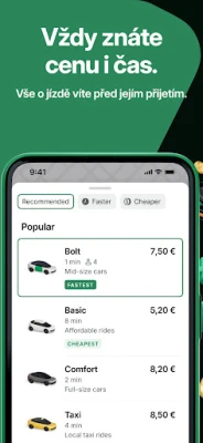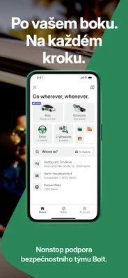 Naše precizní služby staví na pilířích rychlosti a kvality. V průměru naši řidiči přijíždějí k vám do pouhých tří minut, a jejich vysoké hodnocení 4,7 z 5 hvězdiček je důkazem závazku k vaší spokojenosti. S více než 110 miliony spokojených uživatelů ve více než 600 městech napříč 50 zeměmi a čtyřmi kontinenty, Bolt redefinuje městskou dopravu na globální úrovni. Dbáme na vaši bezpečnost prostřednictvím integrovaných funkcí, jako je tlačítko SOS pro okamžitou pomoc, možnost záznamu zvuku během jízdy pro zvýšení pocitu bezpečí a VoIP volání pro snadnou komunikaci přímo v aplikaci. Navíc, každá vaše jízda s námi je uhlíkově neutrální, neboť kompenzujeme veškeré vyprodukované emise CO2, čímž společně přispíváme k čistšímu životnímu prostředí. Nezapomeňte ani na pravidelné personalizované nabídky, které vaši jízdu ještě zjednoduší.