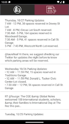 FSU Tranz vám pomůže zjistit obsazenost parkovacích garáží na Florida State University. Zobrazuje, zda jsou garáže poloprázdné, zčásti plné nebo zcela obsazené. Díky přehledným ukazatelům, mapě a oznámením snadno najdete volné místo.