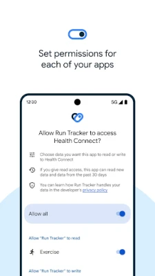 S Health Connect máte absolutní kontrolu nad svými osobními zdravotními daty. Všechny informace jsou uchovávány bezpečně a soukromě, přímo na vašem zařízení, offline. Předtím, než udělíte přístup jakékoli nové aplikaci, můžete snadno a intuitivně zkontrolovat a přesně vybrat, co chcete sdílet. A pokud si to kdykoli rozmyslíte, nebo budete chtít zkontrolovat, které aplikace nedávno k vašim datům přistupovaly, Health Connect vám umožní spravovat všechna nastavení ochrany soukromí pomocí několika klepnutí, zajišťujíc transparentnost a klid.