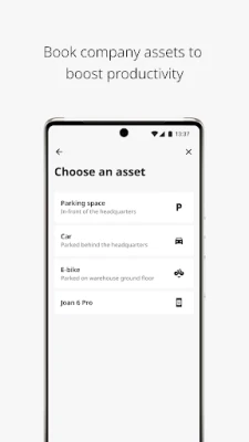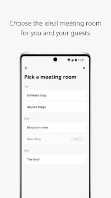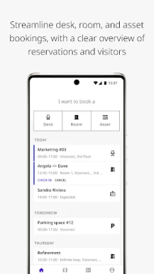 Najděte perfektní zasedací místnost bez námahy. Aplikace Joan zobrazuje volné místnosti přímo na interaktivním plánu vašeho kancelářského patra, což vám umožní rychle rezervovat prostor, který vyhovuje vašim požadavkům. Potvrďte svou účast na schůzkách, snadno upravujte jejich detaily, prodlužujte je nebo ukončujte. Joan také pomáhá chránit zdraví vašich zaměstnanců – přímo v aplikaci lze vyplnit nezbytný zdravotní dotazník před příchodem do kanceláře, což přispívá k bezpečnějšímu pracovnímu prostředí. Sledujte a zobrazujte klíčové informace o schůzkách, aby vaše porady byly vždy produktivní a efektivní.