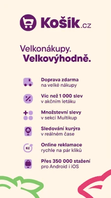 Mobilní aplikace Košík je vaším spolehlivým partnerem pro snadné a rychlé nákupy. Užíváte si rychlou a bezpečnou platbu kartou přímo z pohodlí vašeho telefonu. Zapomněli jste něco přidat? Žádný problém – snadno doobjednáte chybějící položky. A jakmile vám doma něco dojde, stačí jen klepnout a ihned si to přidat do košíku. Navíc máte vždy pod kontrolou doručení: přesně víte, kolik tašek k vám míří a v jakém čase u vás kurýr zazvoní. Efektivita a přehlednost na dosah ruky.