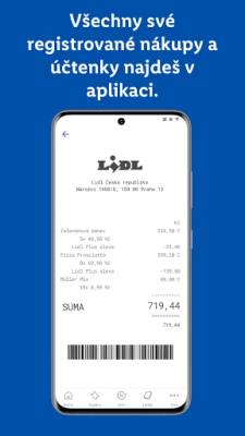 S Lidl Plus máte kompletní přehled o všech aktuálních i budoucích akcích. Díky elektronickým letákům už nikdy nezmeškáte žádnou výhodnou nabídku – dokonce si prohlédnete i ty, které přijdou v dalším týdnu. Užívejte si také pohodlí digitálních účtenek. Všechny vaše registrované nákupy jsou bezpečně uloženy v aplikaci, což vám poskytne dokonalý přehled o vašich výdajích a značně zjednoduší případné vrácení zboží či reklamace. Už se nemusíte obávat vybledlých papírových dokladů, vaše elektronické účtenky jsou navždy v perfektním stavu.