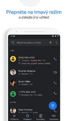 Intuitivní a čistý design Aplikace Telefon zaručuje, že vaši blízcí jsou vždy na dosah, a navigace v aplikaci je příjemná a efektivní. Pro pohodlí vašich očí a úsporu baterie je k dispozici tmavý režim, který optimalizuje zobrazení za soumraku. Navíc, v kritických situacích poskytuje Aplikace Telefon klíčovou podporu: během tísňového volání zobrazí vaši přesnou polohu a umožní vám komunikovat s operátorem o potřebné pomoci, i když nemůžete mluvit. Tato pokročilá řešení jsou navržena pro většinu zařízení Android s operačním systémem Android™ 9.0 a novějším, přinášející spolehlivou a inteligentní správu hovorů přímo do vašeho telefonu.